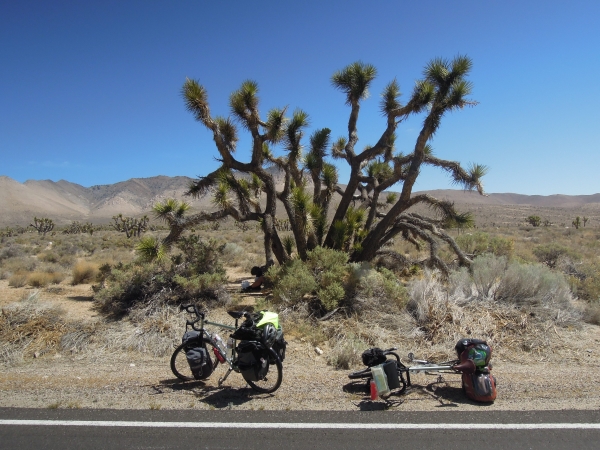 Wir sind Anfang März in Miami gestartet und waren Mitte April in Phoenix. Nach einem zweiwöchigen Unterbruch ging es dann Ende April von Phoenix weiter Richtung Pazifik. Würde jedes Jahr gleich aussehen, würde ich wahrscheinlich diese Reisezeit weiterempfehlen. Von Florida nach Texas war alles am blühen, und in der Wüste war es heiss, aber nicht unerträglich. Leute, die die gleiche Route einen Monat früher gemacht haben, haben uns erzählt, dass sie auf Pässen Nächte erlebt hatten, wo das Kondens am Zelt gefroren war. Am Golf von Mexiko war es sehr warm und extrem feucht. Nachts fielen Tropfen von den Bäumen auch wenn es nicht regnete...Von Austin an den Pazifik war es im Allgemeinen sehr heiss und sehr trocken. Meistens starteten wir noch vor Tagesanbruch und hörten um den Mittag auf, da die Hitze Nachmittags viel zu gross war. Rund um Las Vegas war es zum Beispiel um acht Uhr morgens schon 38°C. Während den sieben acht Stunden auf dem Rad tranken wir an solchen Tagen je etwa fünf Liter Wasser. Die Extreme liegen im Süden der USA sehr nahe beeinander und gerade in dieser wüstenartigen Region schwanken die Temperaturen schnell. Gewinnt man paar Höhenmeter sieht die Situation plötzlich ganz anders aus. Wir haben uns mitten im Süden Handschuhe gekauft, da der Morgen an einigen Orten frisch war und erlebten in Mimbres, New Mexico, einen kleinen Schneesturm. Die Winde sollen meistens von West nach Ost gehen. Wir hatten wohl Glück und hatten bis nach Austin quasi nur Rückenwind. Die Winde waren manchmal sehr stark. In New Mexiko erlebten wir Gegenwind von 70km/h – da strampelt man bergab. Nicht zu vergessen, dass es im Süden im März und April sehr früh dunkel wird und man manchmal etwas zu früh von der Dunkelheit eingeholt wird.
